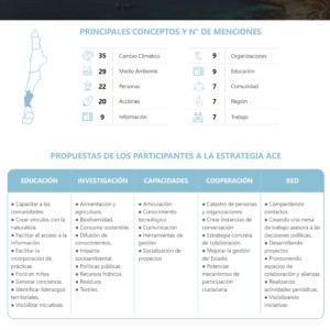 En cumplimiento del compromiso en materia de capacidades contenido en la Contribución Determinada a Nivel Nacional del país (2020), en el acuerdo de Paris y de lo estipulado en la Estrategia Climática de Largo Plazo de Chile, así como en los mandatos internacionales, en 2020 Chile inicia el camino de elaboración de su primera Estrategia de Desarrollo de Capacidades y Empoderamiento Climático o Estrategia ACE con un amplio proceso participativo temprano.
