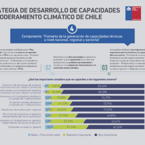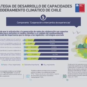 La Estrategia de Desarrollo de Capacidades y Empoderamiento Climático de Chile, agrupa los elementos considerados a nivel internacional e incluye la investigación científica, estructurándose en 5 componentes: